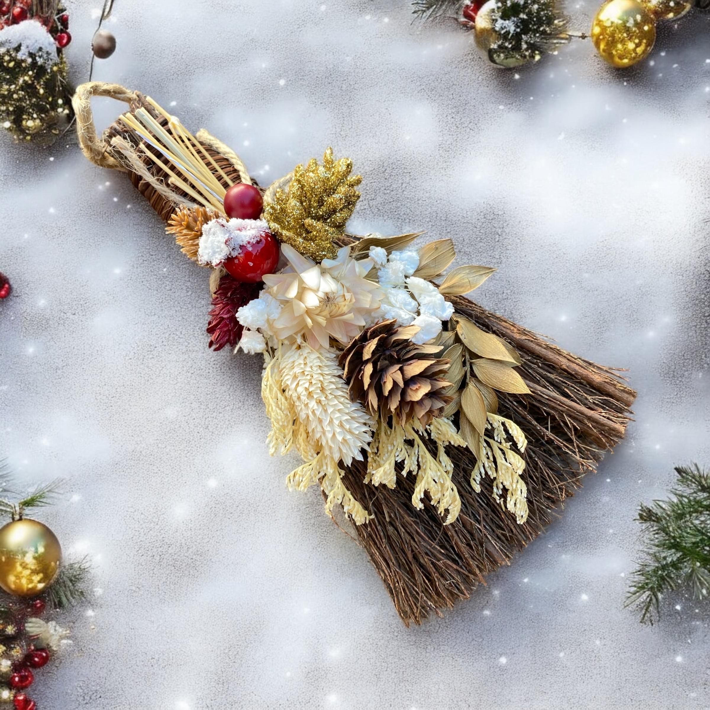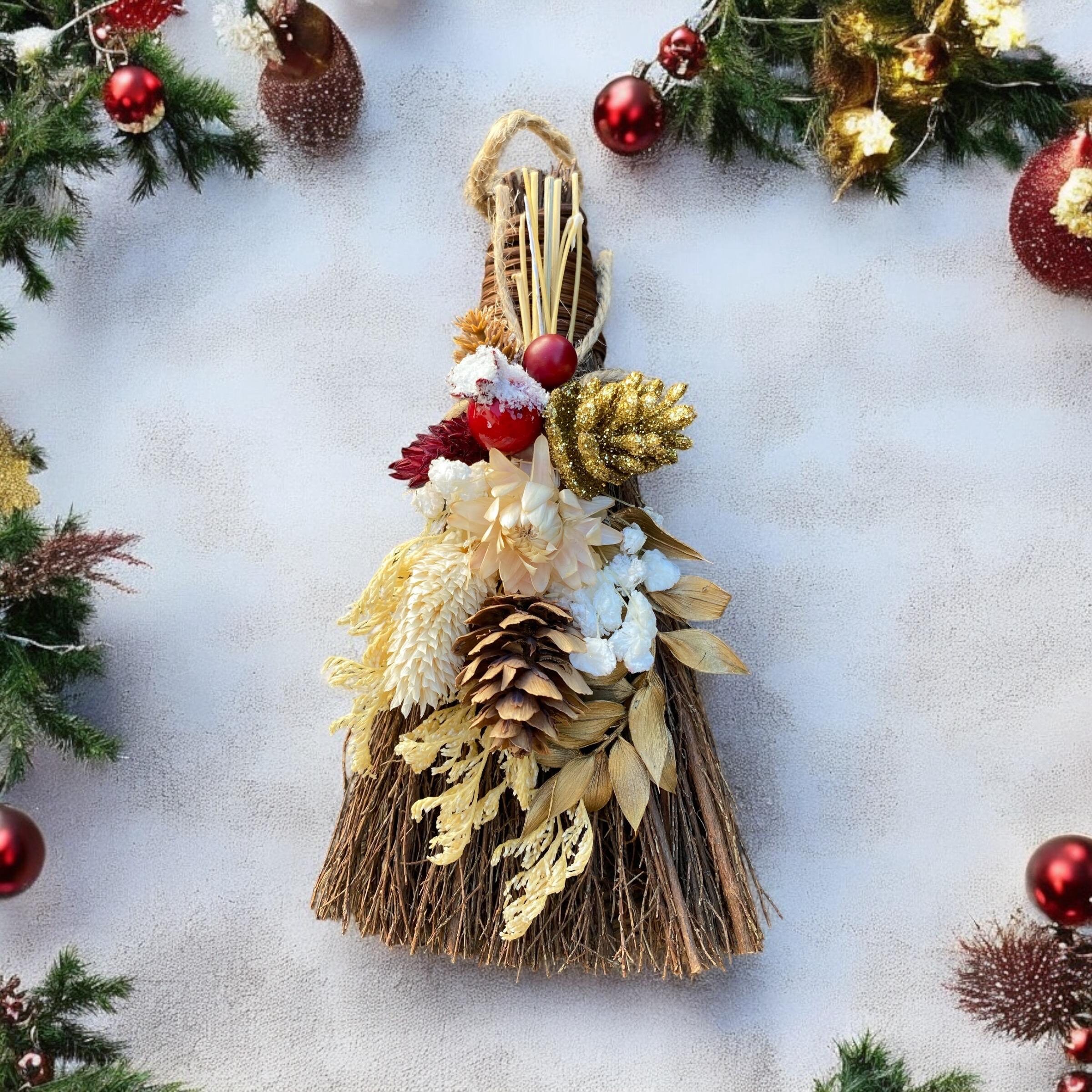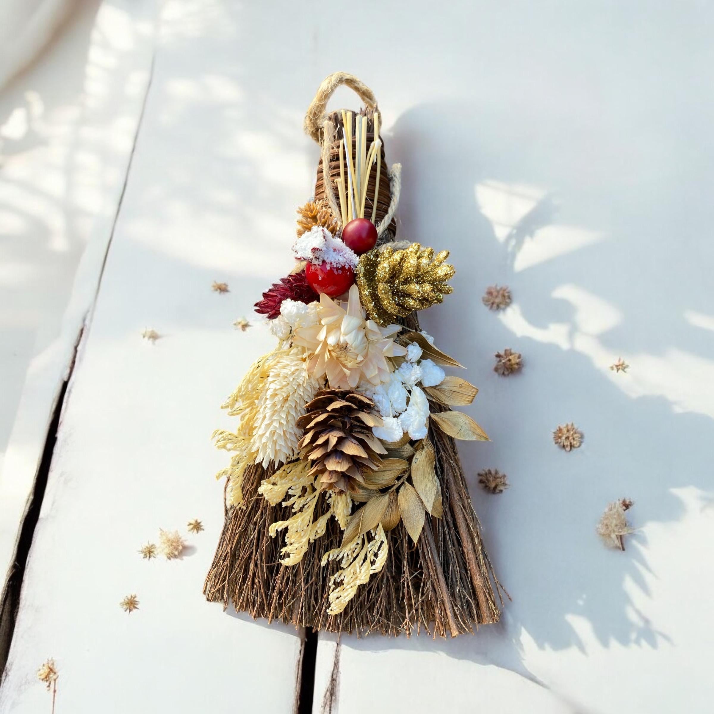 These fragrant cinnamon whisks are a perfect Christmas addition to any gift box. Scented with cinnamon oil and adorned with winter florals. Each has a jute twine hanger. Adds charming touch to any room and infuses the air with warm cinnamon.